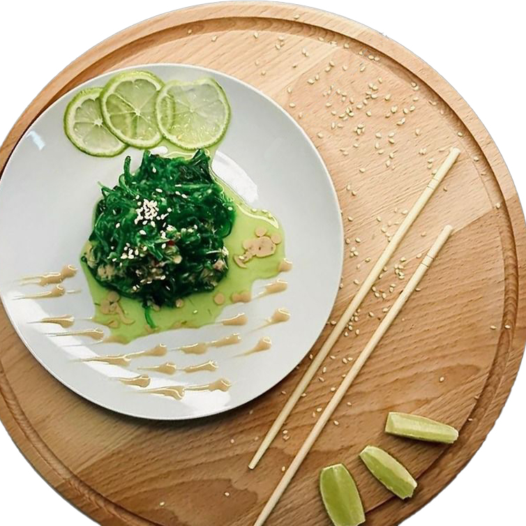 Состав: МАРИНОВАННЫЕ ВОДОРОСЛИ. ПОДАЁТСЯ С ОРЕХОВЫМ СОУСОМ(ГАМАДАРИ).